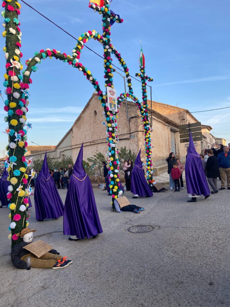 Sin embargo, esta celebración no pertenece solo a los jóvenes. Durante más de dos meses, madres, tías, abuelas y demás mujeres del pueblo dedican su tiempo y habilidad a la creación de flores de papel y adornos, que llenan la Calle del Calvario de color y simbolismo. Con cada detalle, reflejan la unión y el espíritu que define a El Herrumblar.